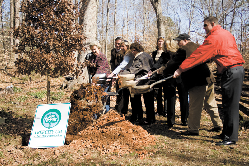 Sandy Springs officials Feb. 19 commemorated Arbor Day by planting a young white oak at the Big Trees Forest Preserve on Roswell Road.