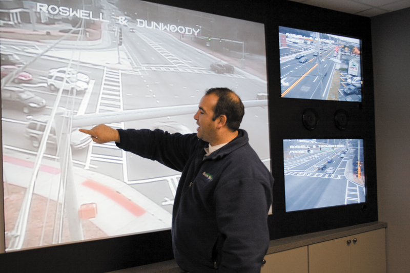 The center currently controls 18 cameras along Roswell Road that capture real-time images of traffic flow from the north, south, east and west.