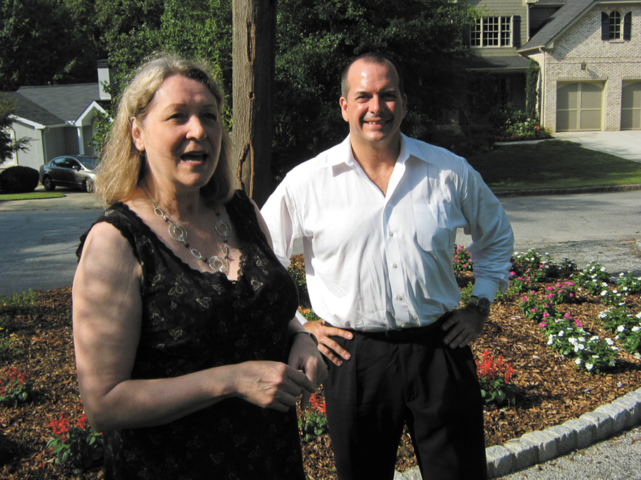 The Brookhaven Community Connection donated $500 to be used on the community park at Clack’s Corner. Park volunteer Meredith O’Connor, left, accepted the contribution from BCC vice president Ron Patton at the park, located at Appalachee and Cartecay drives. The BCC raised the money through its first Brookhaven Bazaar, a market the group sponsored in June. Patton said the organization intends to hold other fund-raising bazaars in the future.