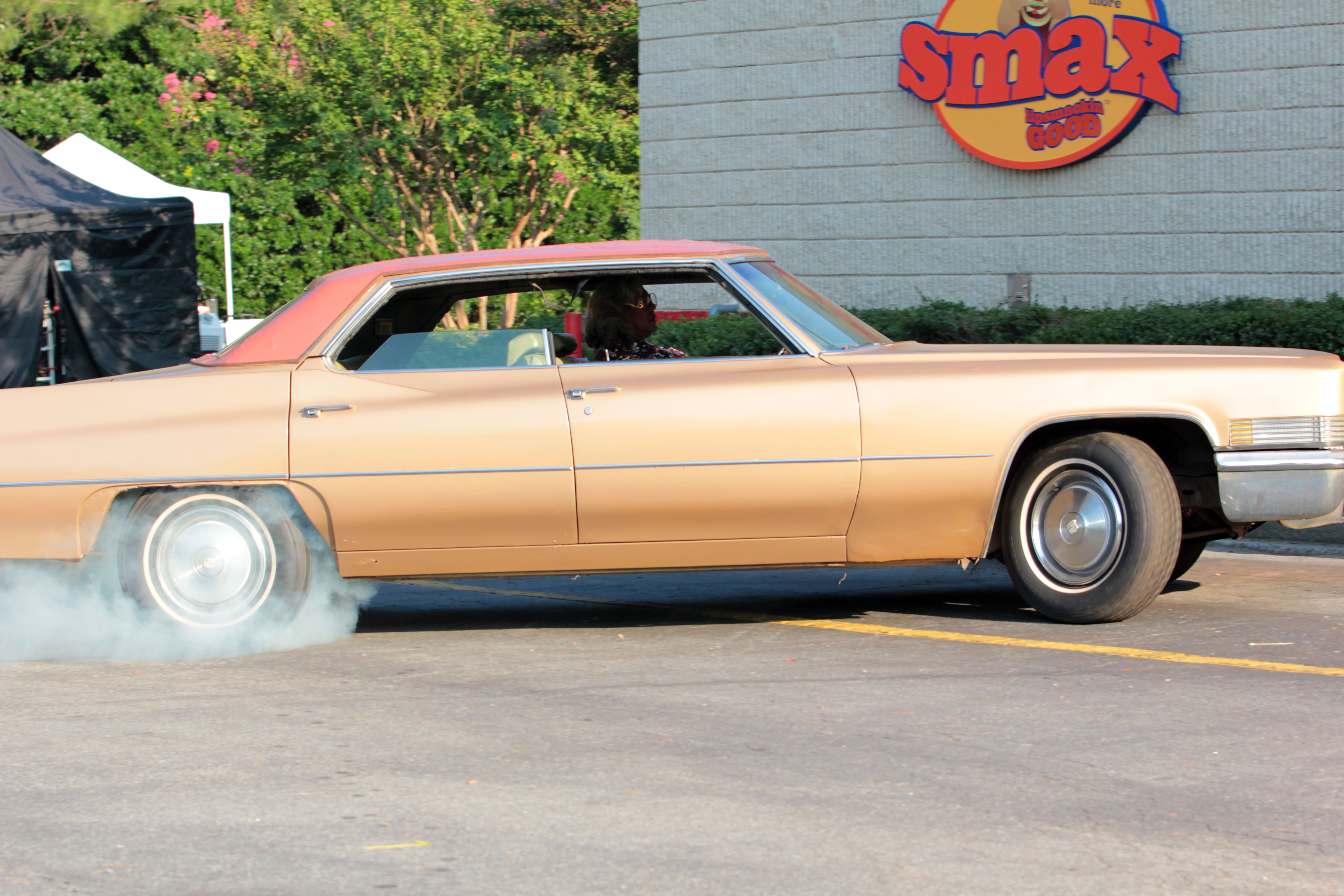 In one scene, a Cadillac de Ville is crashed through the side of the restaurant.
