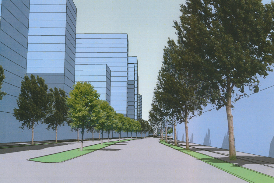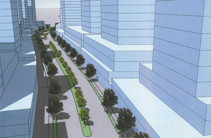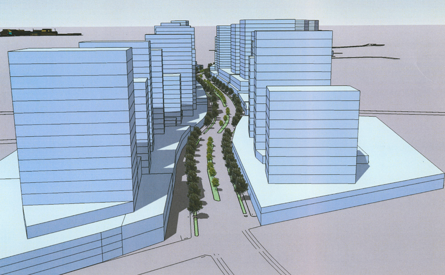 Development along the corridor was a more difficult issue, he said. Present regulations allow for 220-foot tall buildings. “We tried to take the best of existing plans and consider the impact of mass of buildings on adjacent neighborhoods,” he said.