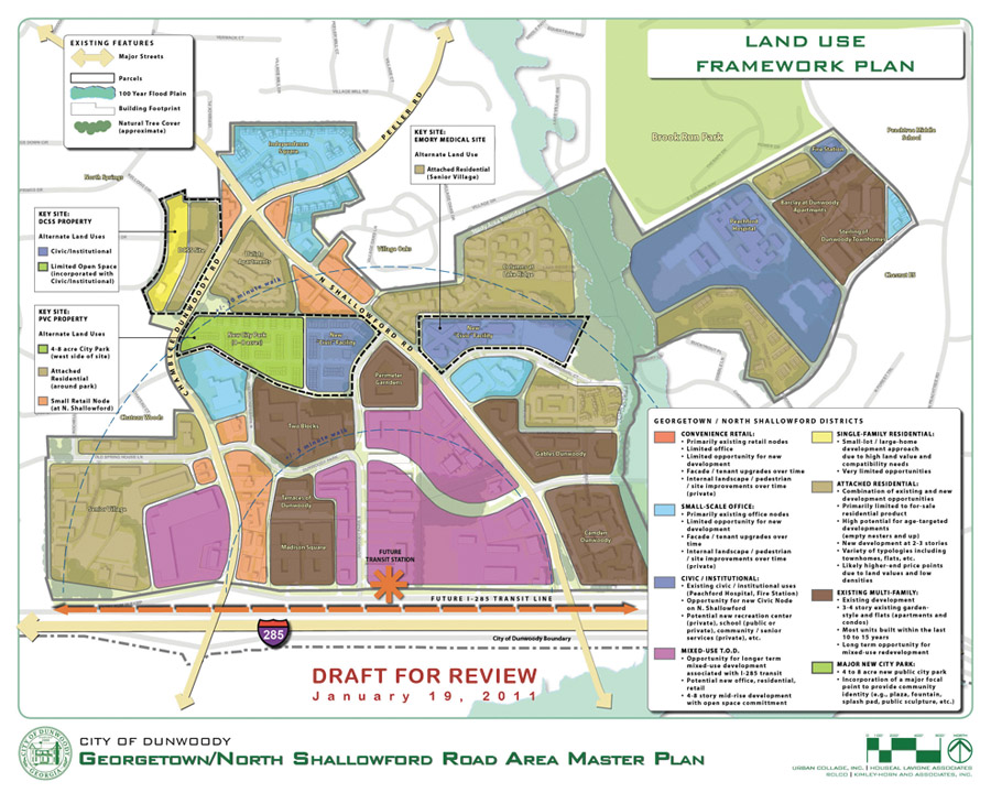That area stretches from west of the shopping center to Shallowford Road and north from I-285 to the place Chamblee-Dunwoody and Shallowford roads converge. The master plan area also includes the Brook Run Park area.