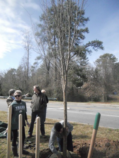 The city of Sandy Springs officially celebrated Arbor Day on Feb. 17, planting a Dutch Elm in the ground along Sandy Springs Circle and covering its base with dirt using gold-colored shovels.