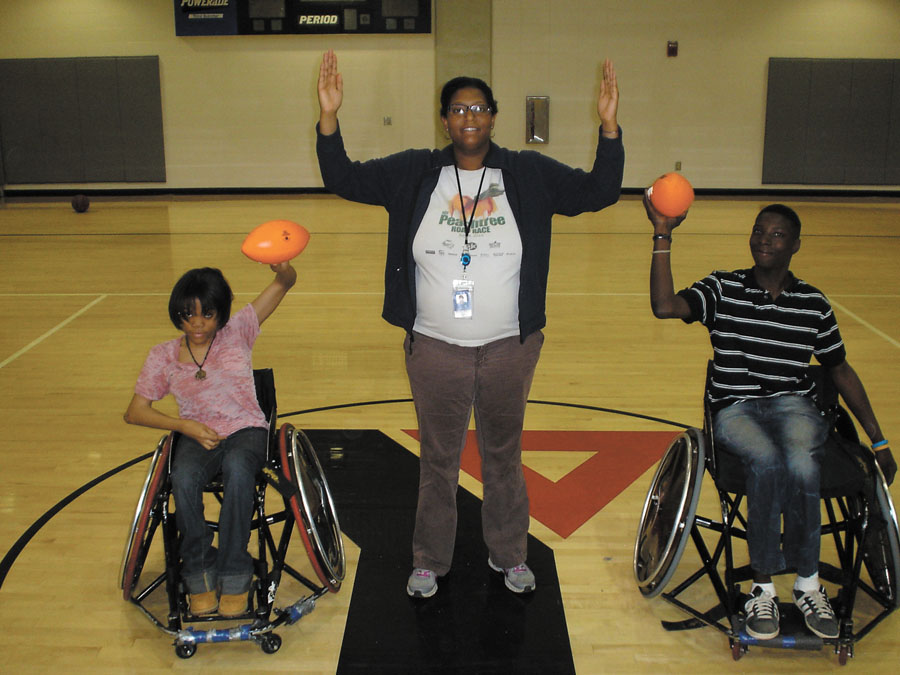Arnold, who’s been coaching the team for six years, is a recreational specialist with the city of Atlanta. Any boy or girl, grade 1-12, whose primary disability is physical, is eligible to play. They may walk unassisted or with devices, but they must sit in manual or power wheelchairs to compete. The Wolfpack is part of the league organized by the American Association of Adapted Sports Programs and Atlanta Public Schools.