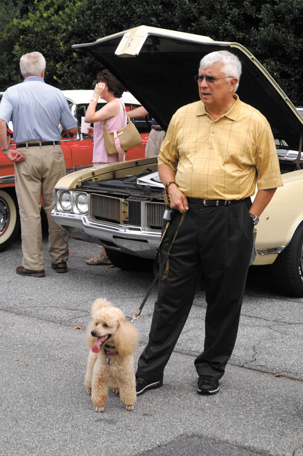 Marion Glo and his poodle “Truffles,” enjoy the vintage vehicles.