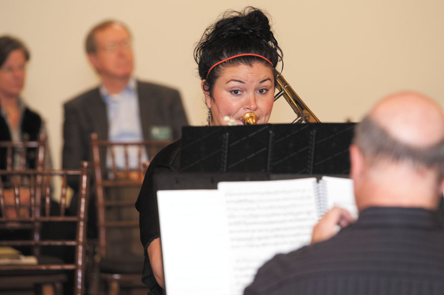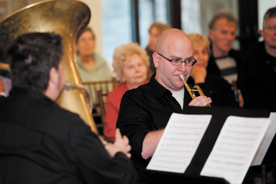 Jonathan Swygert plays trumpet for the Midtown Brass Quintet during a performance at Heritage Hall in Sandy Springs on Nov. 18.