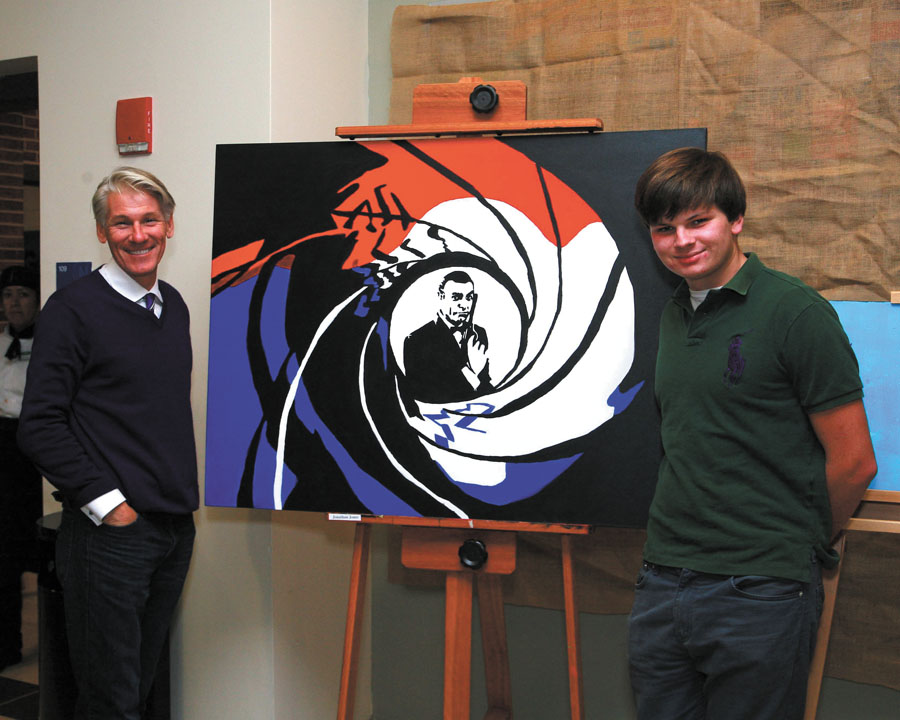 Left, Steve Jones, with his son Jason, a senior at Mount Vernon Presbyterian School, stand proudly with Jason’s entry in the Christmas Arts Showcase on Dec. 4, a new holiday tradition for the school.