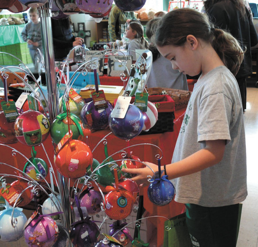 Emery Minnich of Sandy Springs carefully examines possible Christmas purchases at Holy Spirit Preparatory School’s annual Secret Santa Store. Lower-school students arrive home in early December with hand-decorated shopping bags filled with wrapped gifts for parents, grandparents and siblings. They are usually some of the first presents to be placed under the family tree, according to the school.