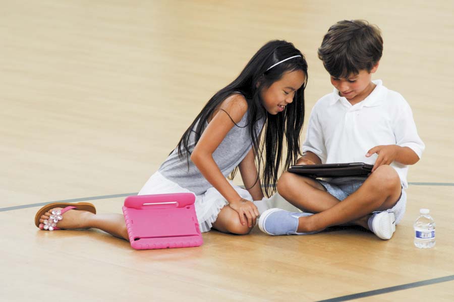 Tuesday Blobaum, left, and Brooks Anderson take a break from a “Meet and Greet” for new principal Dr. Kenneth Proctor at Sarah Smith Elementary School on July 22. The first day of school is August 7.