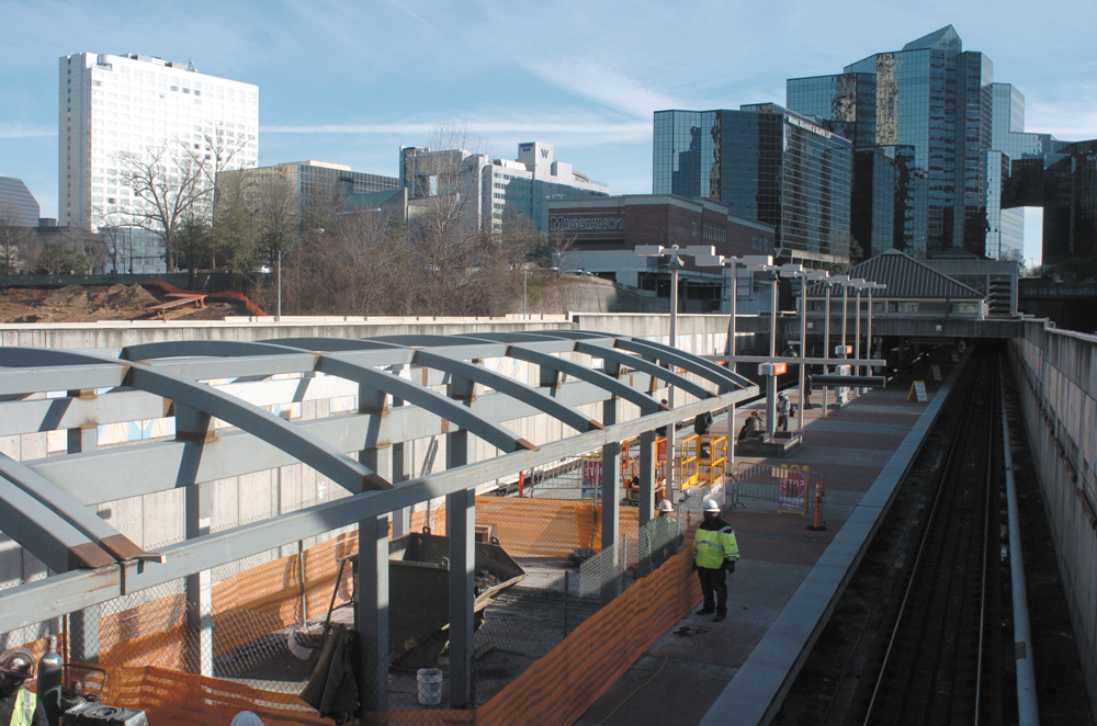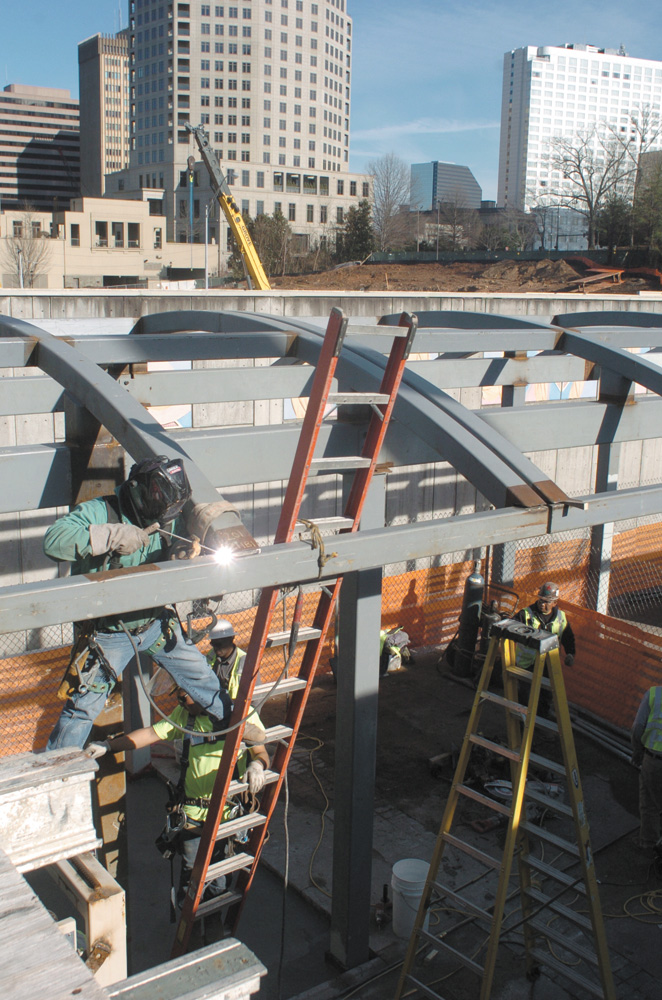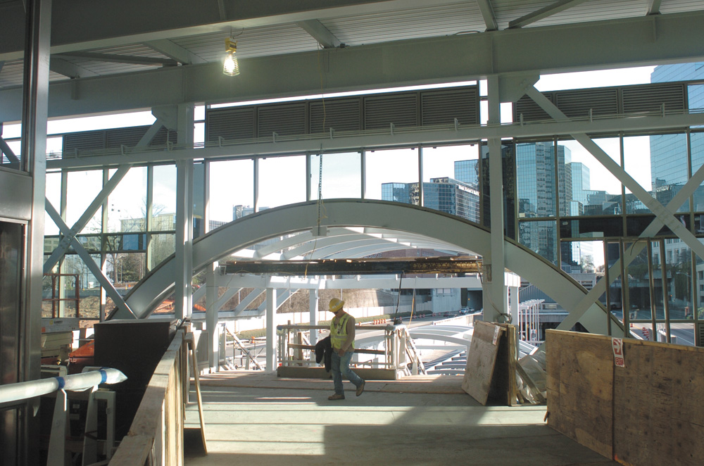 Crews are hard at work at the Buckhead MARTA station, constructing a bridge which will allow pedestrians to cross between Stratford Road to Tower Place Drive over Ga. 400. The bridge, slated for mid-summer completion, will also provide an entrance to the MARTA station. More photos on page 26.