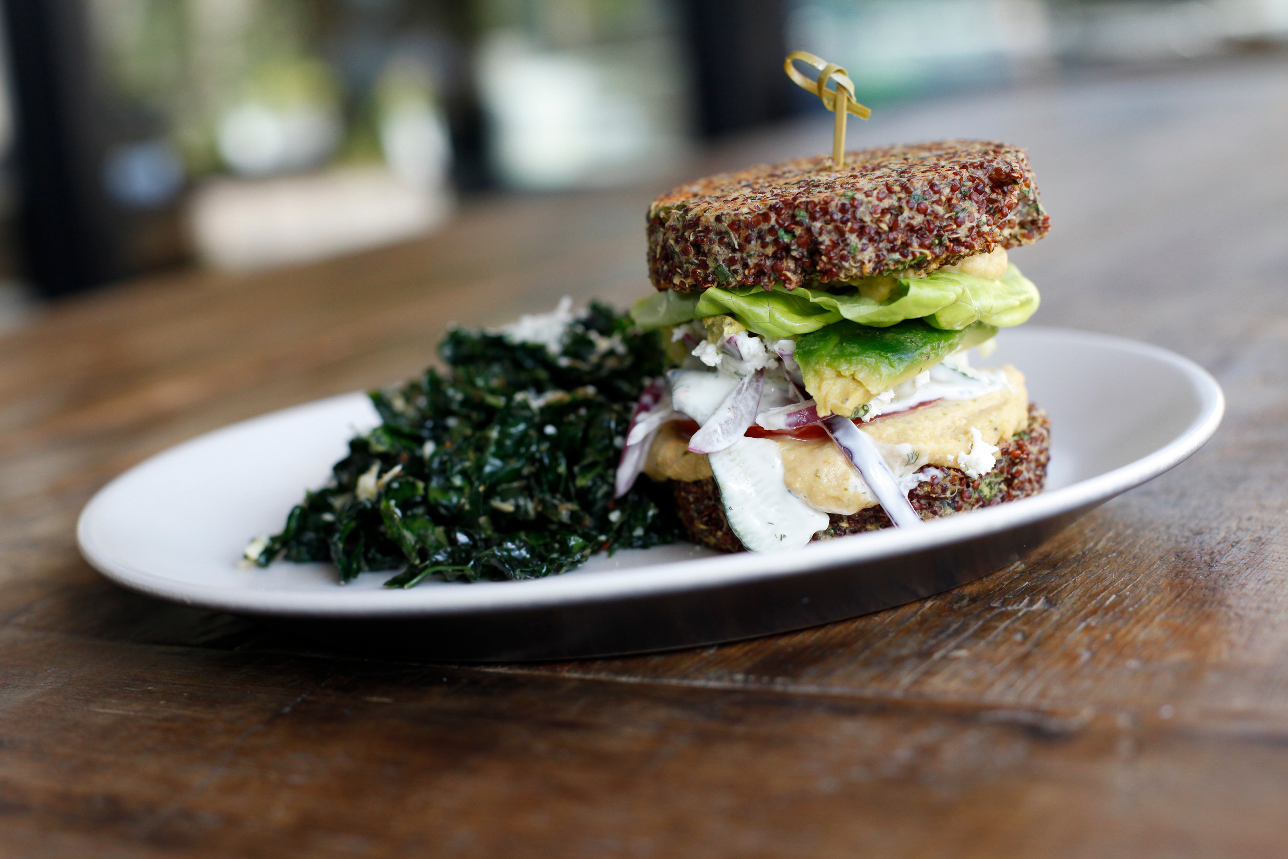 The restaurant’s full bar serves sustainable, organic and bio-dynamic wines and cocktails made with fresh fruit, honey and other natural flavorings. True Food Kitchen also offers non-alcoholic “natural refreshments” including juice, herb and vegetable blends like “kale-aid” made with kale, apple, cucumber, celery, lemon and ginger and “hangover RX” with coconut water, pineapple, vanilla and orange juice.