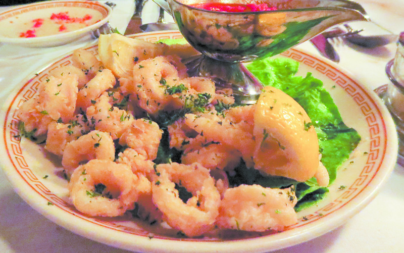 The appetizers arrived quickly. The mussels in white wine were perfectly done with lots of fresh garlic and Italian parsley. The fried calamari was light and crispy with a spicy Fra Diavolo sauce. The fried mozzarella was a hit; it’s a large gooey wedge served with a good Sunday gravy.