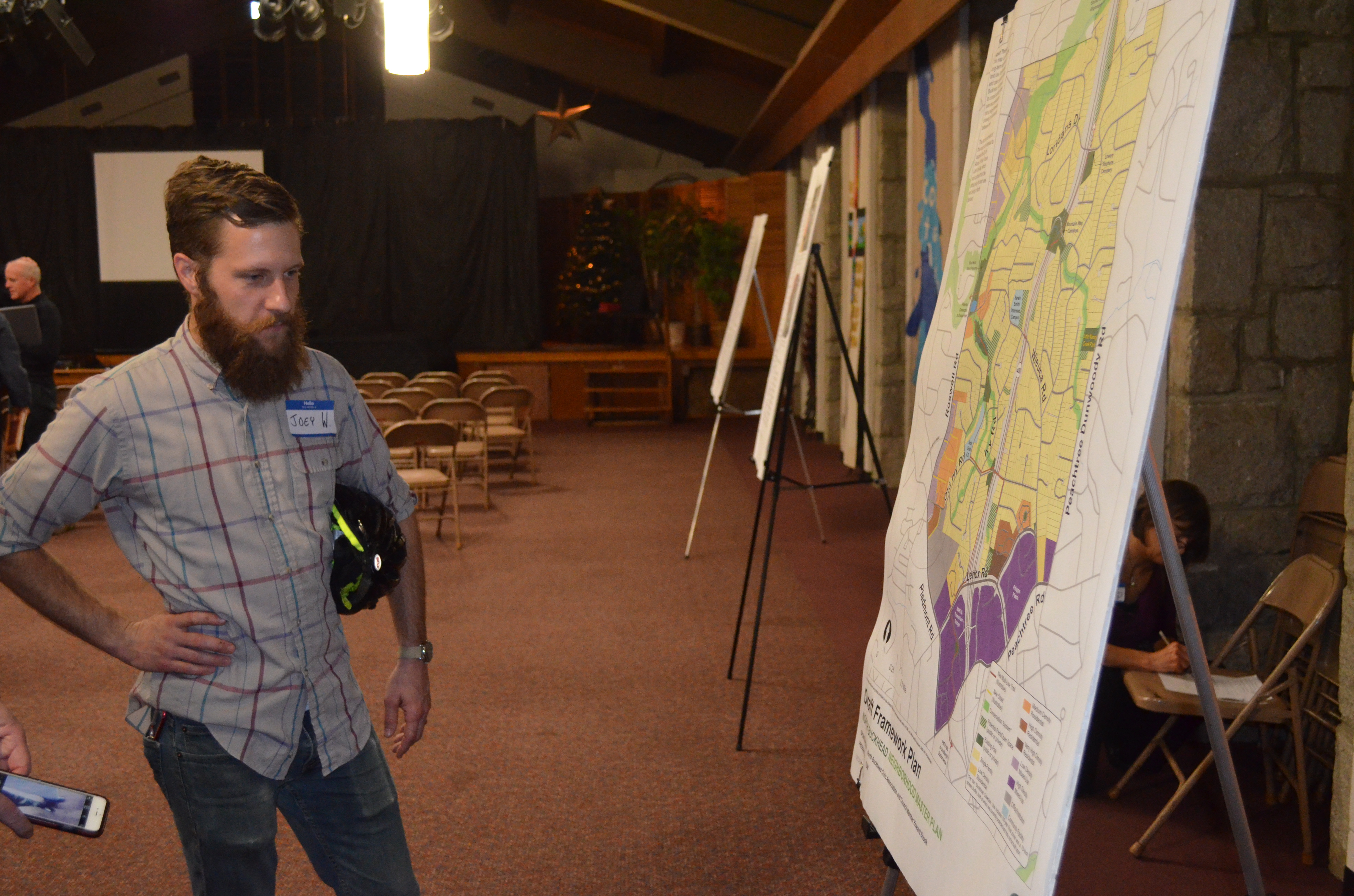 “There’re definitely some ideas I like,” Wilkinson said, holding a bicycle helmet beneath his arm as he looked over one of the easel-mounted maps shown to association members Dec. 4. “I think it’s ambitious.”