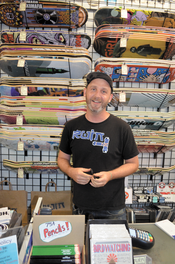 His narrow shop, crowded with skateboards and clothes, is the only place his business ever has been located, he said.