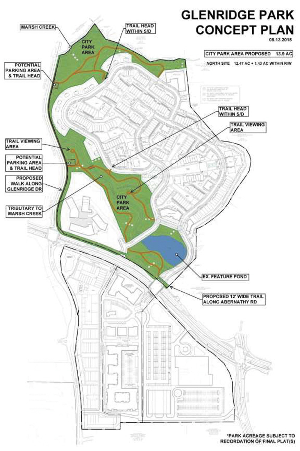 Ashton Woods will pay for the park’s amenities, largely consisting of trails and six to eight parking spaces at various spots along Abernathy and Glenridge Drive. Busher estimated the cost at $200,000 or more. The developer then will deed the property to the city as a park.