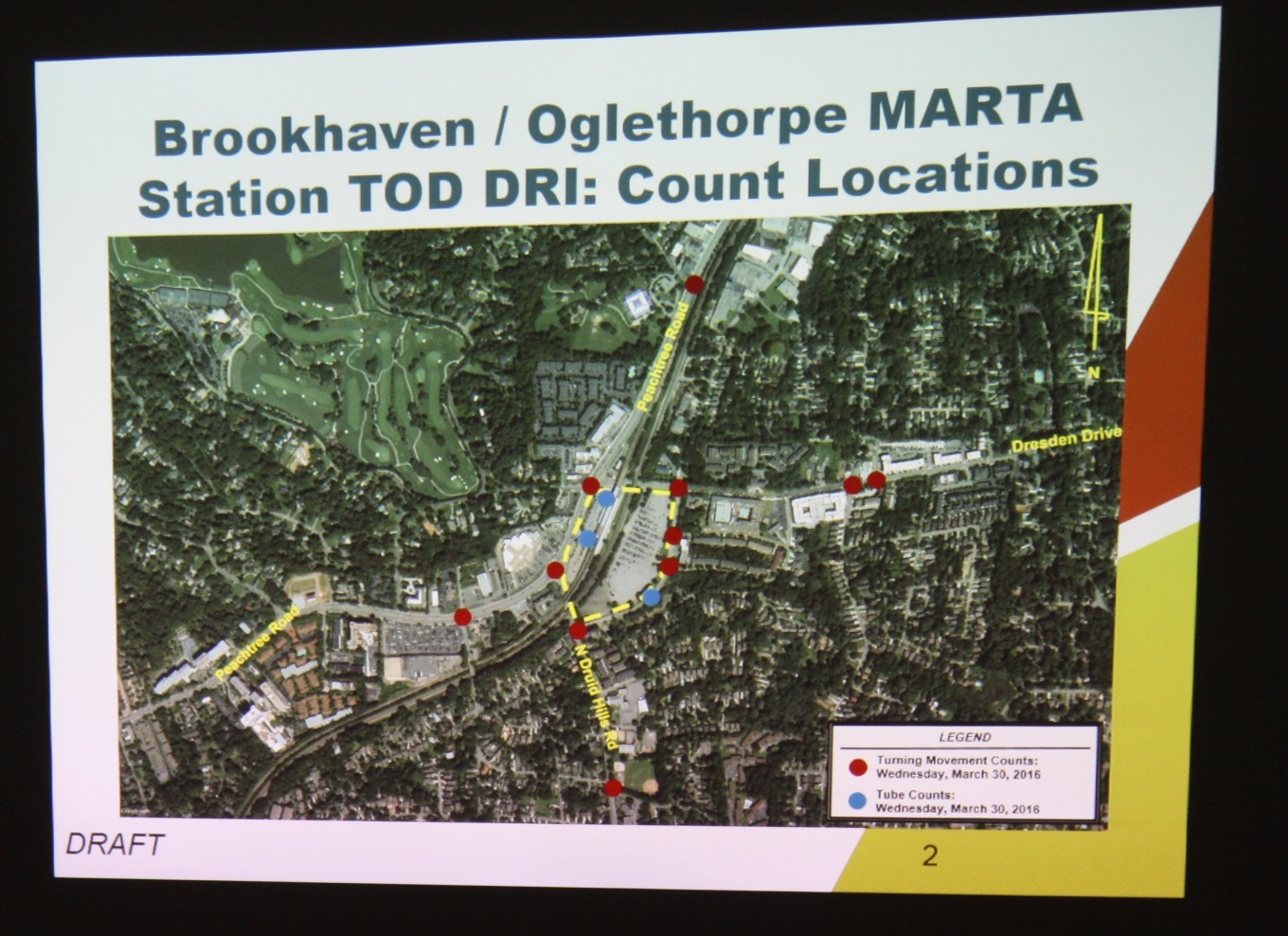 The traffic study includes projections out to 2019 with the TOD development and also takes into account three developments on Dresden Drive: Gables Oglethorpe apartments and the proposed Dresden Village mixed use development and Dresden Drive at Appalachee Drive apartments.