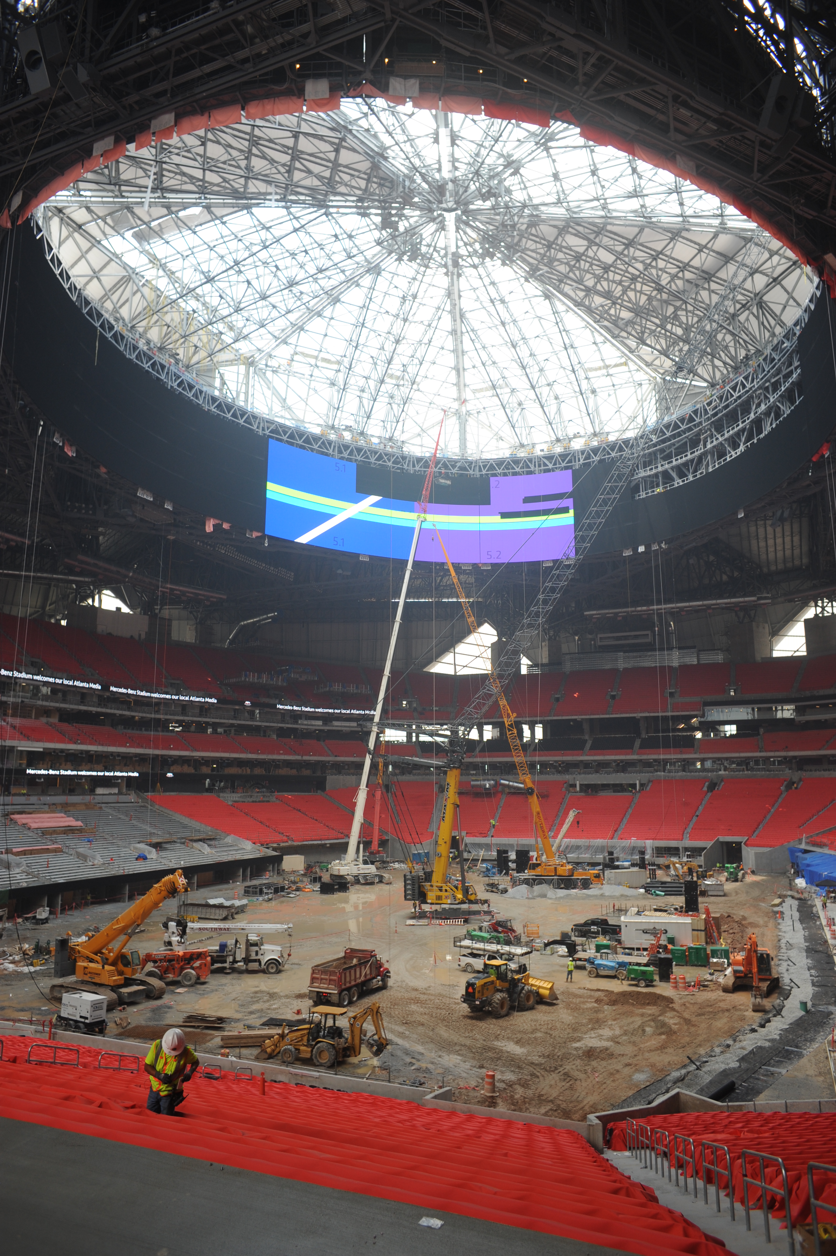 Work is moving rapidly on the new Mercedes-Benz Stadium downtown, as seen on a June 15 tour led by Mercedes-Benz USA, the carmaker’s North American branch, which is temporarily based in Dunwoody and is building its new headquarters in Sandy Springs. The company bought stadium naming rights in 2015 to coincide with MBUSA’s move. The tour showcased special club and suite seating areas with the Mercedes-Benz brand. (Photo by Phil Mosier)