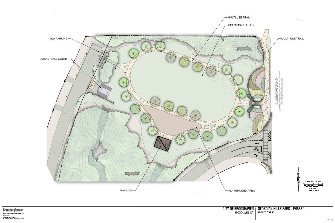 The Brookhaven City Council in July approved the $1.2 million improvements to the 3.6-acre park that will include an open space field with Bermuda turf, an irrigation system and a walking trail that extends around the open space field. A playground, picnic shelter, and an outdoor basketball half-court will also be constructed. Infrastructure enhancements at this location will also include a redesigned parking lot and improvements to the sidewalk that runs along Clairmont Road.