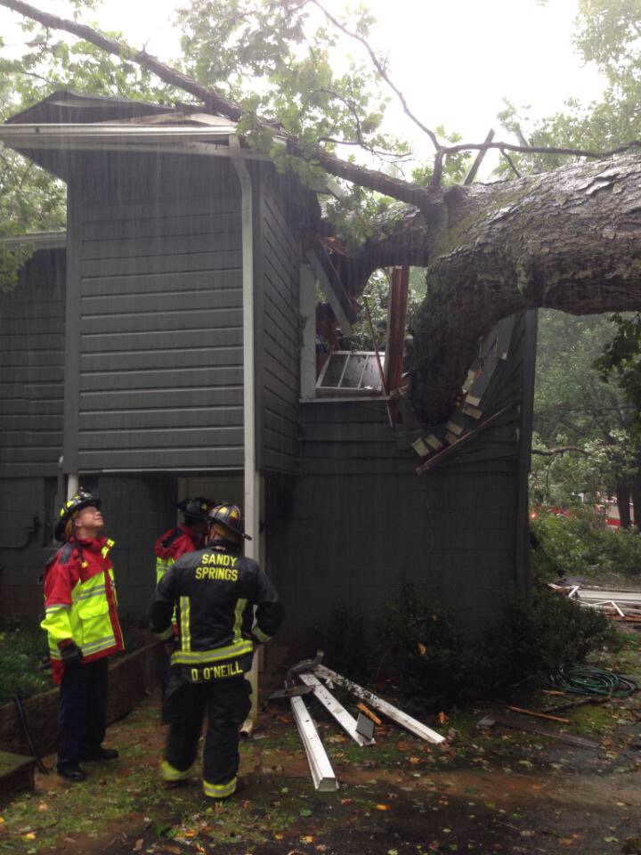 A Sandy Springs man was killed today, Sept. 11, when Tropical Storm Irma blew a large tree down onto his house.