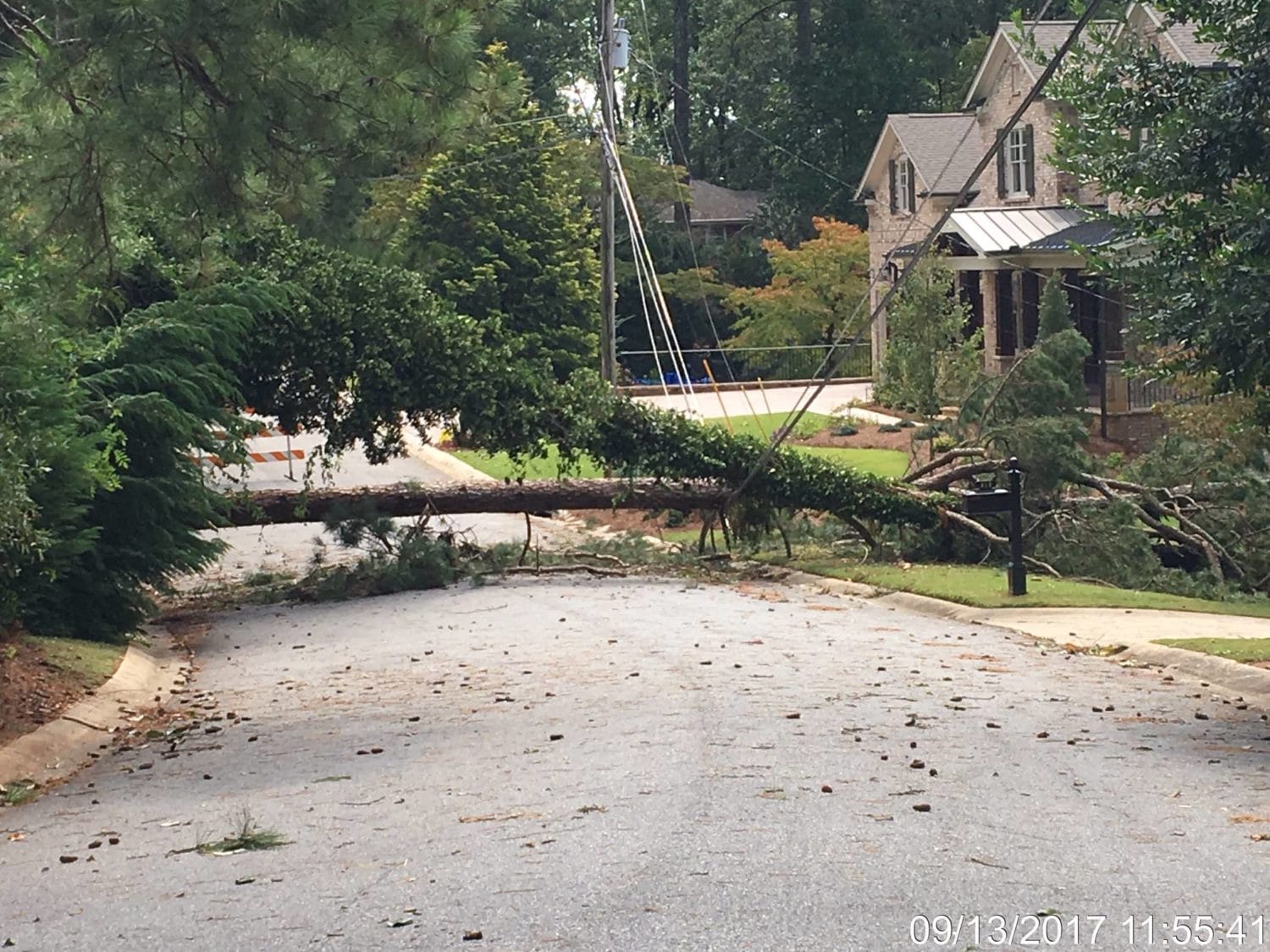 Then Irma finally arrived here as a tropical storm. Sandy Springs got its first call about a fallen tree at 6:30 a.m. on Sept. 11, McDonough said. By the storm’s end, about 45 roads had been closed by fallen trees or electric lines, and a local resident was killed when a tree fell on his house — one of three people the storm killed in Georgia.