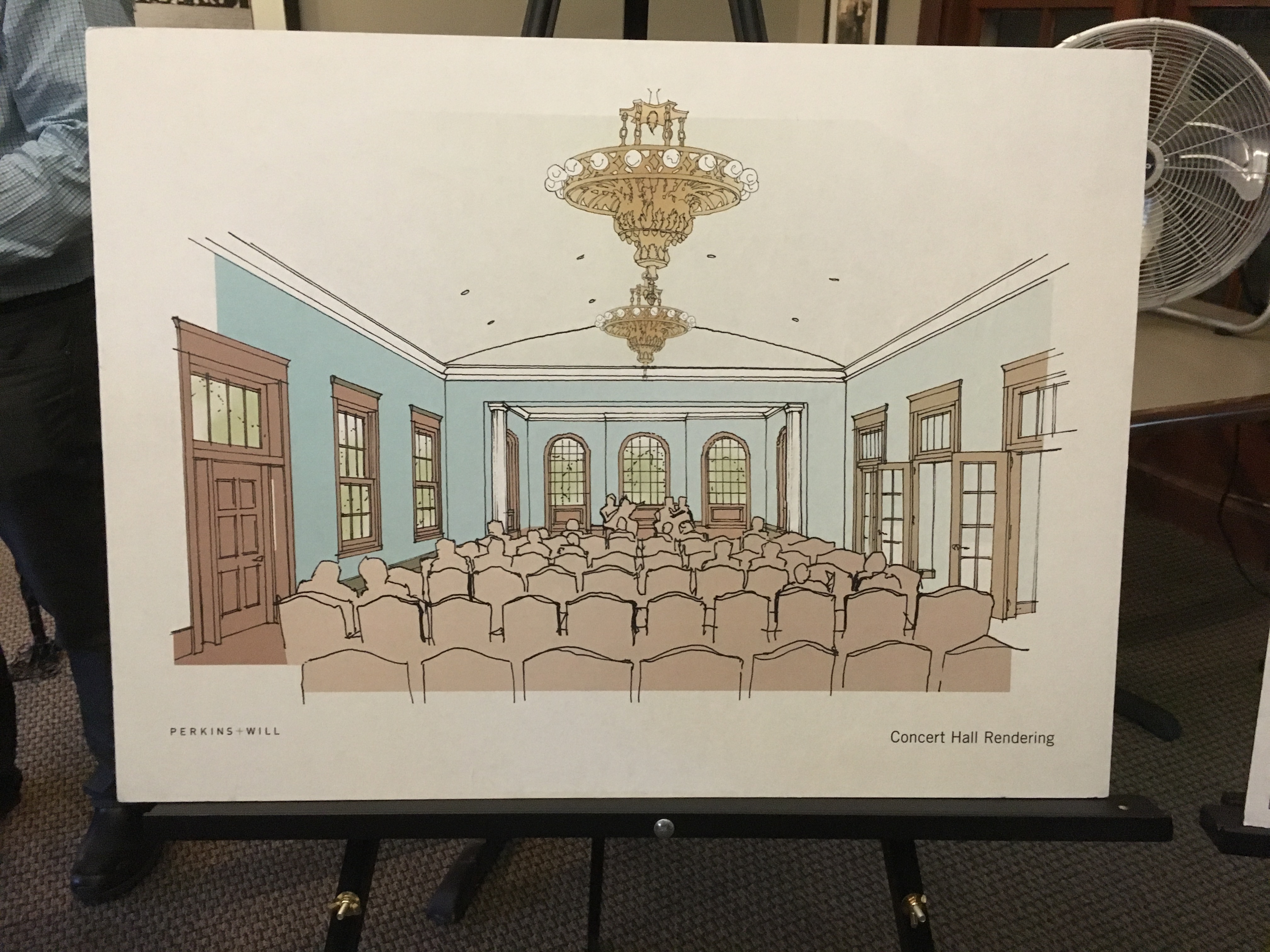 The designs are being done by Perkins+Will architect Allen Post, who has designed music halls in the past and lives across the street from the clubhouse.