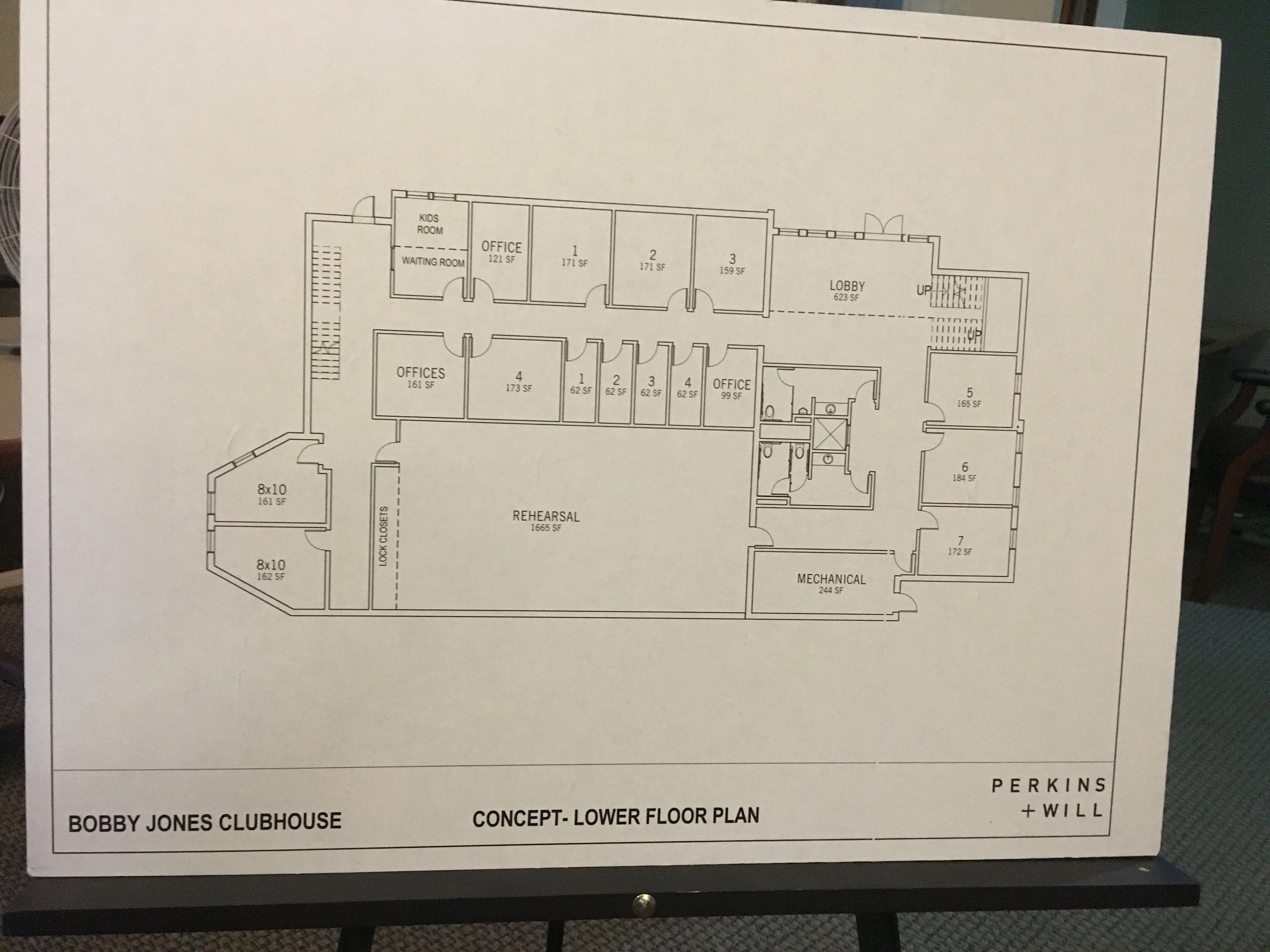 The group is proposing to knock out walls on the main level of the clubhouse to build a stage and expand seating. A patio and bar would also be built behind the seating area. On the lower level, several rooms would be built to host private lessons. A rehearsal studio and lobby would also be created on the lower level.