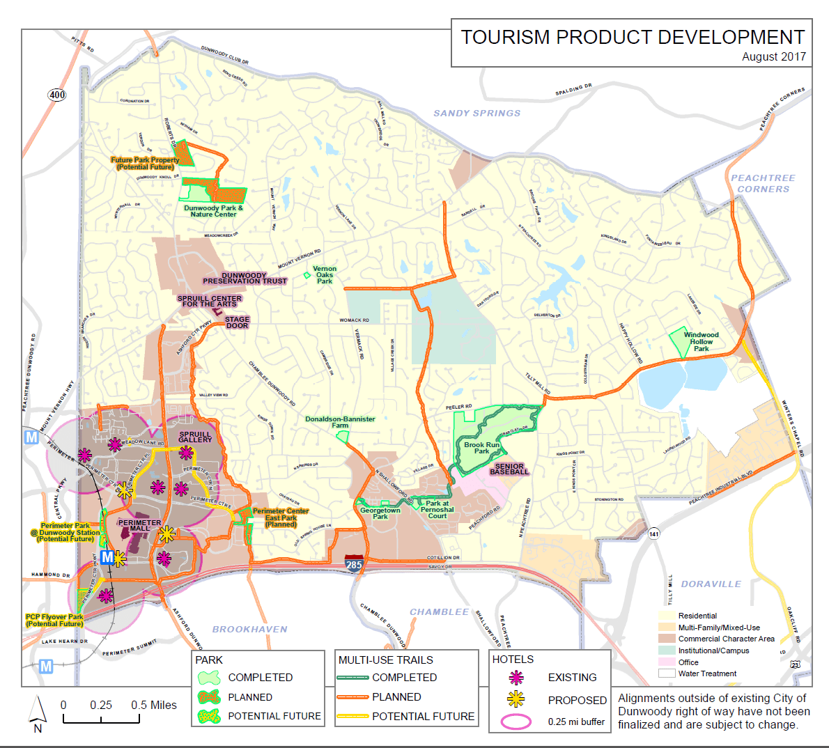 City staff is recommending a majority of the new money go toward trails and parks in Perimeter Center that have had plans sitting on the shelves for several years. A recent CVB survey showed that the number one priority for business and recreational travelers staying in Dunwoody hotels is the desire for a running or walking trail and small parks to visit close to where they are staying.