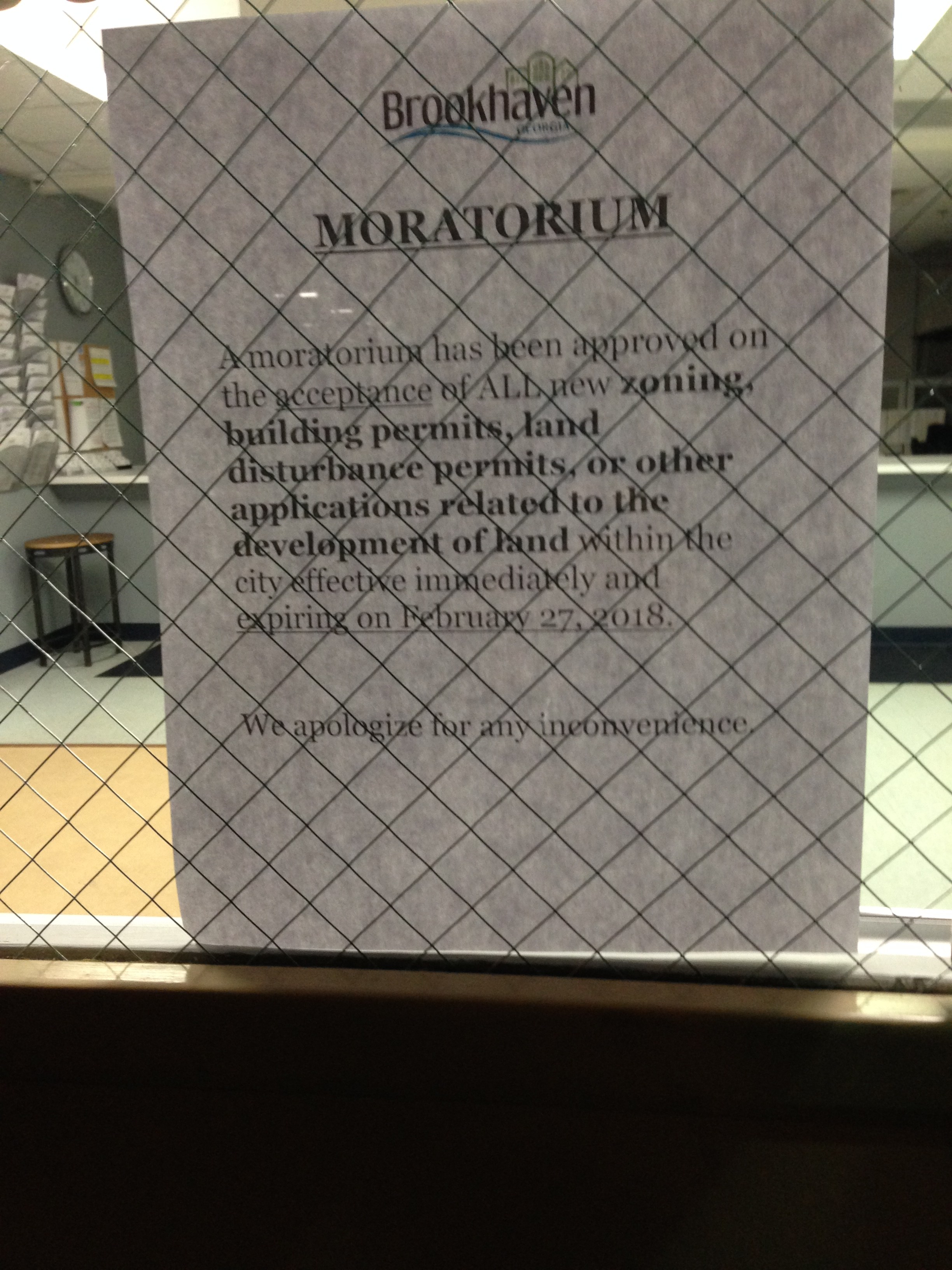 The Brookhaven City Council approved a 35-day citywide moratorium on all zoning cases, land disturbance permits and building permits at its Jan. 23 meeting. City officials would only say it was doing so due to a “technicality” in the zoning code to be fixed by next month.