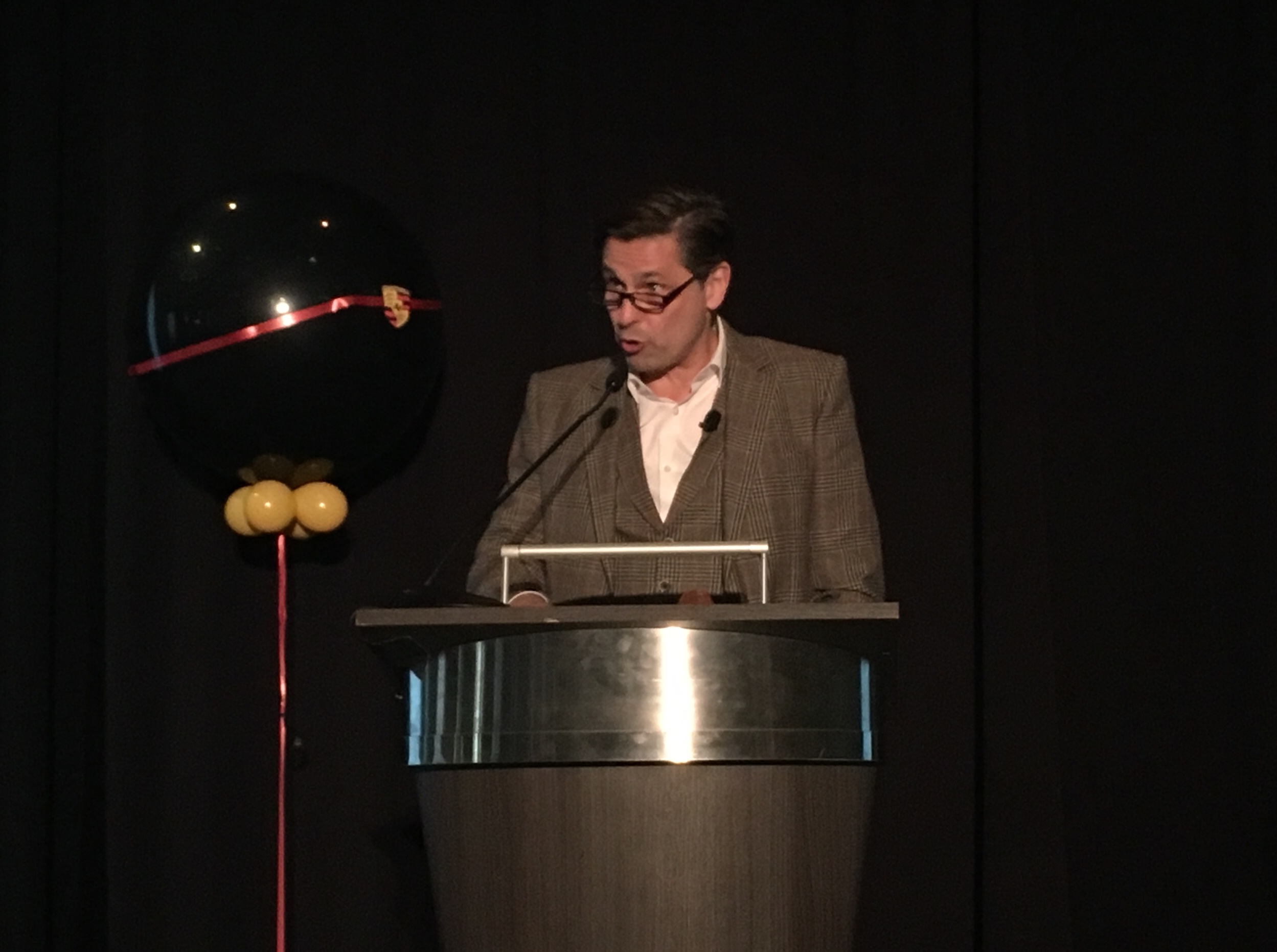 Klaus Zellmer, the president and CEO of Porsche Cars North America, said in his keynote speech, which focused on the company’s future, that Porsche expects half of all new sales to be electric cars in five years.
