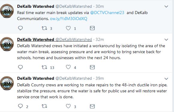 Thanks to our friends @CityofDoraville for the photos of the pipe damage. @ItsInDeKalb says it will be 24 hours for the repair work to be done. More info: https://t.co/o3o5koOD0C pic.twitter.com/aH92VRkY4Y