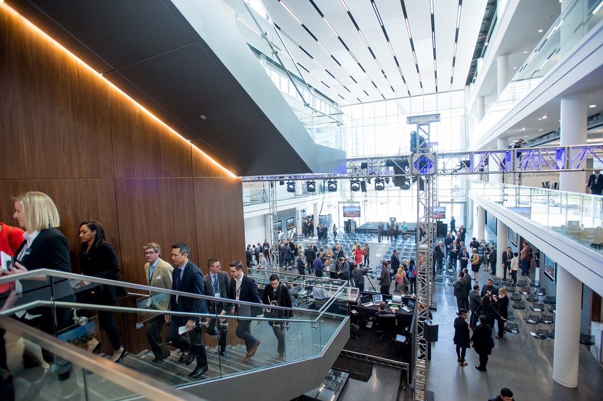 As described on a tour last year, the headquarters is designed to be glass-walled and open to encourage collaborative work. When Deal arrived and strolled in with MBUSA president and CEO Dietmar Exler, he remarked on how “there’s glass all over.”