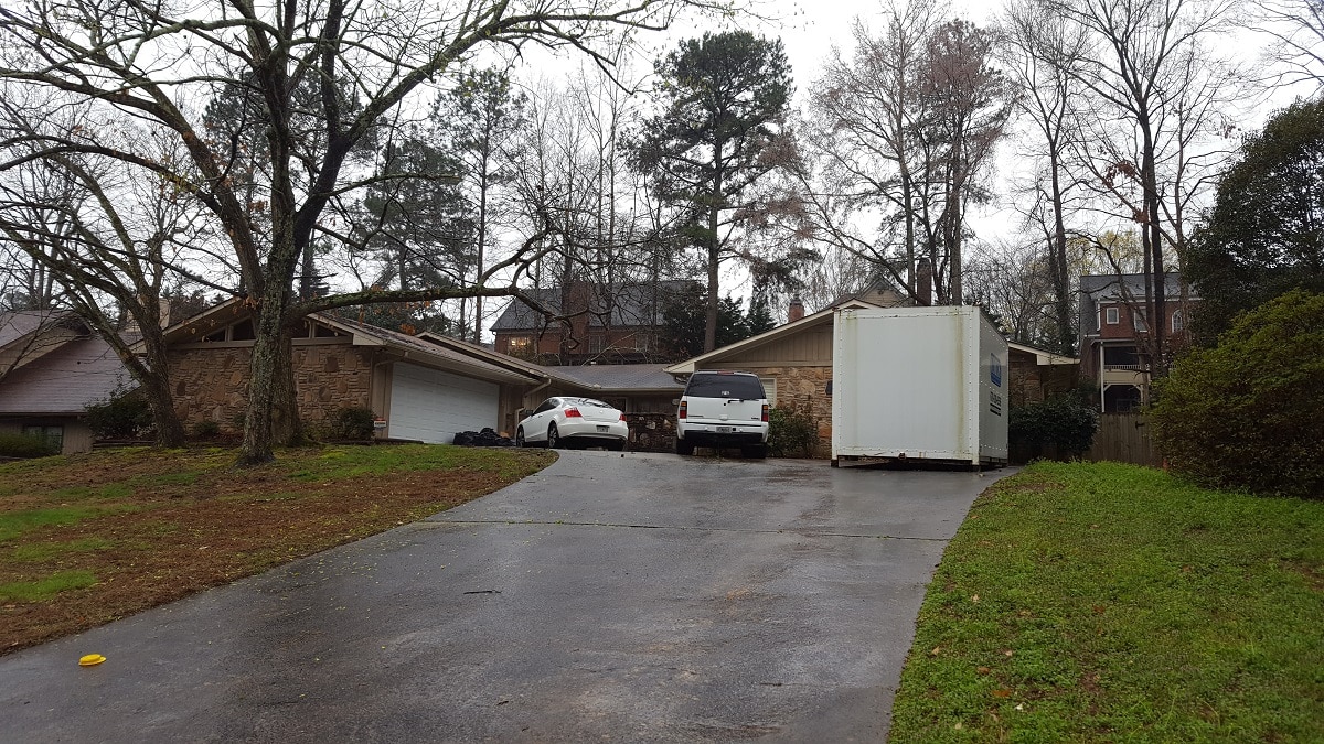 On a recent visit, a storage container and several full trash bags were in the driveway, along with two vehicles, though no one answered the door. Neighbors say the container had been there for months and the vehicles, one of which had a Gwinnett County plate, for at least 10 days.
