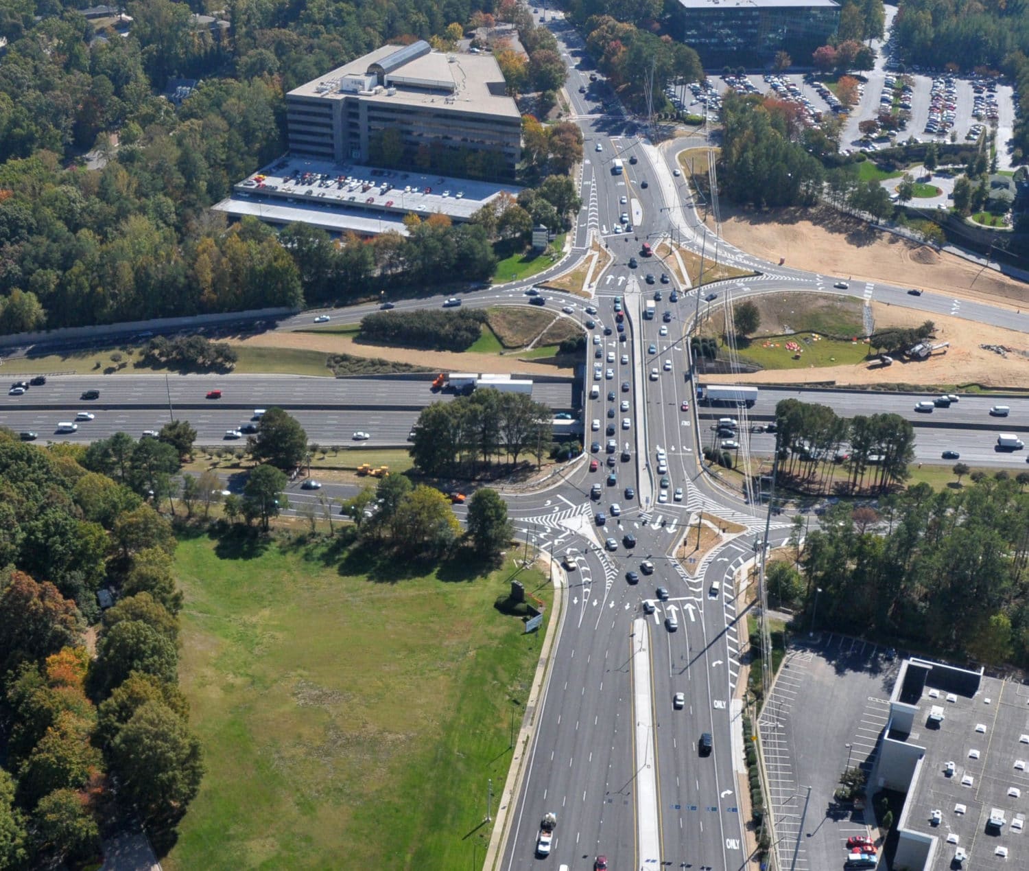 Another huge project, the Ashford-Dunwoody diverging diamond, followed in 2012, helping to establish the PCIDs’ reputation as a big builder and partner with the Georgia Department of Transportation. The intersection, where traffic crisscrosses the street for better flow and safety, was the first of its kind in Georgia and is now widely imitated.